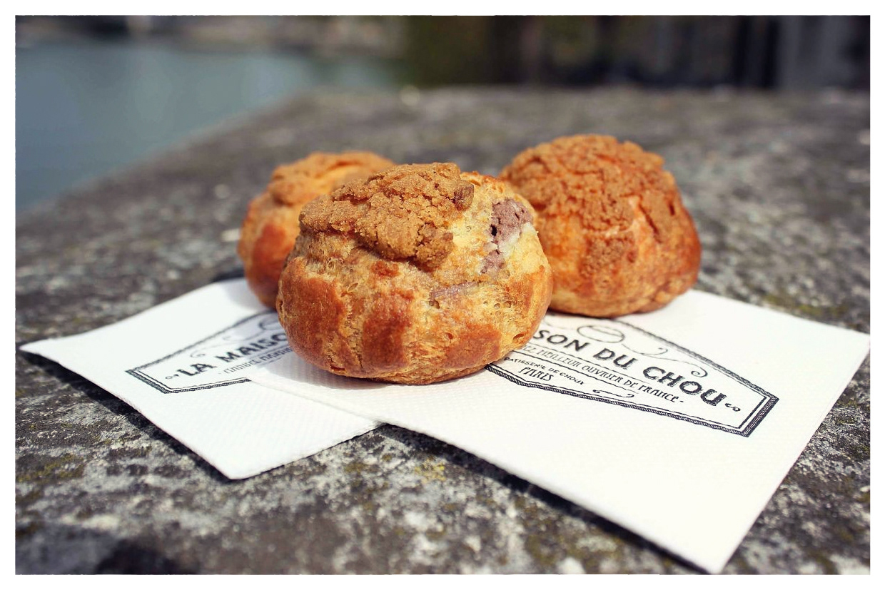 The choux à la crème (cream puffs) regain an artisanal and traditional feel at la Maison du Chou, chef Manuel Martinez’s  pastry shop. Showcasing the chou in a limited number of flavors, this pastry shop follows the worn-out trend of offering a single product, as well as the more recent trend of presenting sober products in their raw state.